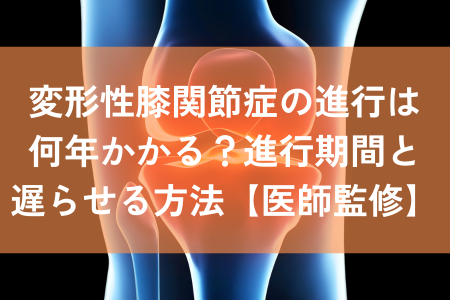 【医師監修】変形性膝関節症の進行は何年かかる?進行期間と遅らせる方法 階段の上り下りや立ち上がり時に感じる膝の痛みや違和感、もしかしたら変形性膝関節症の初期症状かもしれません。 実は、初期段階では自覚症状が少ないため、気づかないうちに進行してしまうことも多い病気なのです。 75歳以上の方の約3人に1人が変形性…